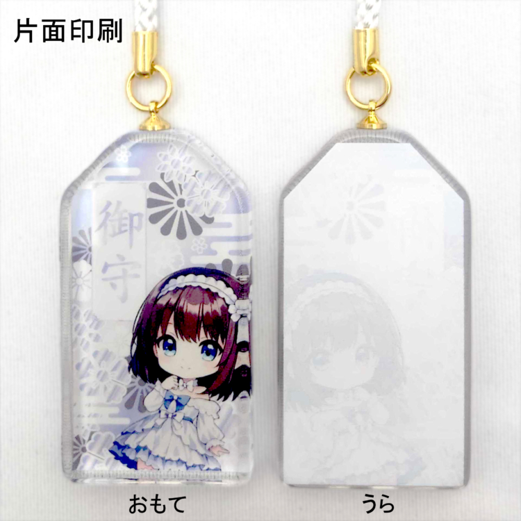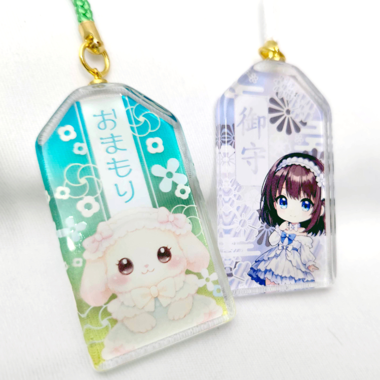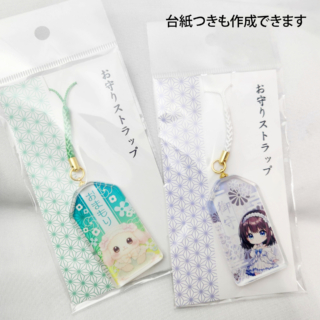 | その他 | ※台紙はオンデマンド印刷になるため校正時と量産時で色味が若干変わる恐れがあります。予めご了承ください。 ※鈴ありも可能です。その場合には単価+10円(税込11円)になります。 ※根付紐の色をお選びいただけます。テンプレート内にてチェック✓をお願いいたします。 |